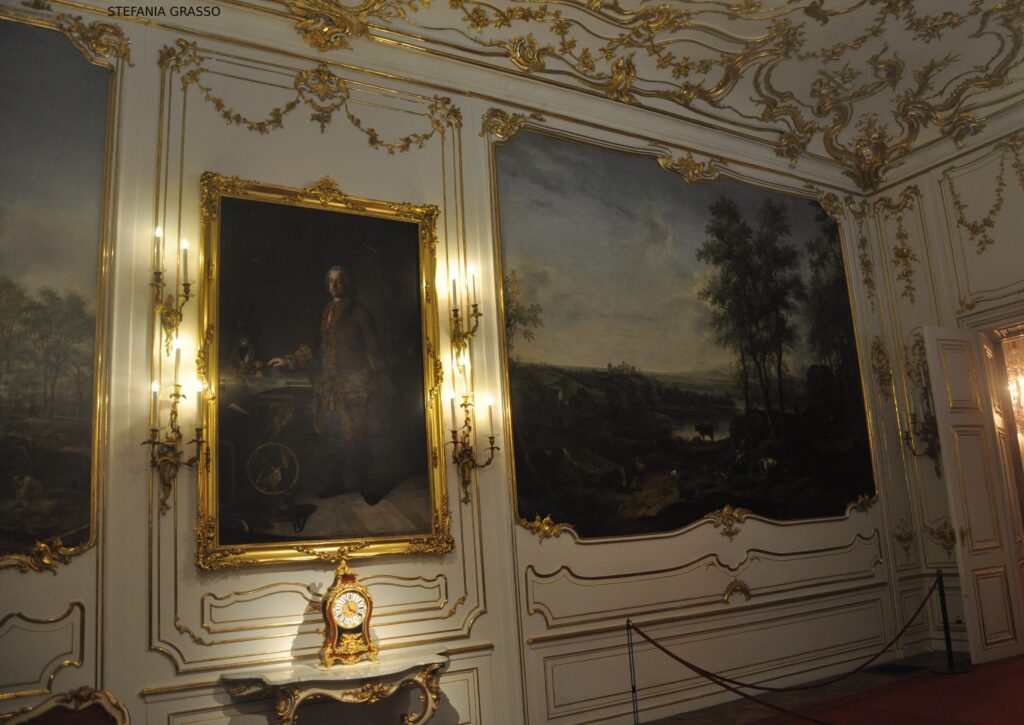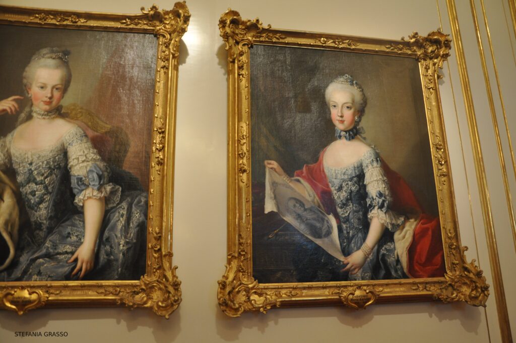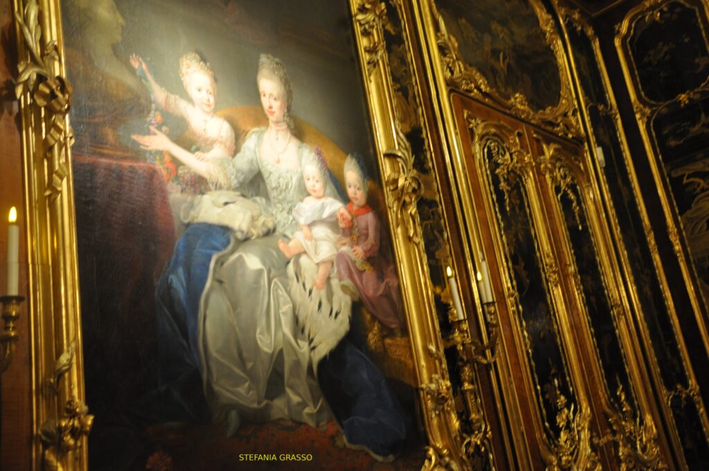 Salone con ritratti delle Arciduchesse. Ritratti delle figlie di Maria Teresa che aveva 16 figli (11 femmine e 5 maschi). Nel 1917 viene installato il bagno dopo l’ultima ristrutturazione per la figlia Zita. SALON der ERZHERZOGINNEN PORTRÄTS.