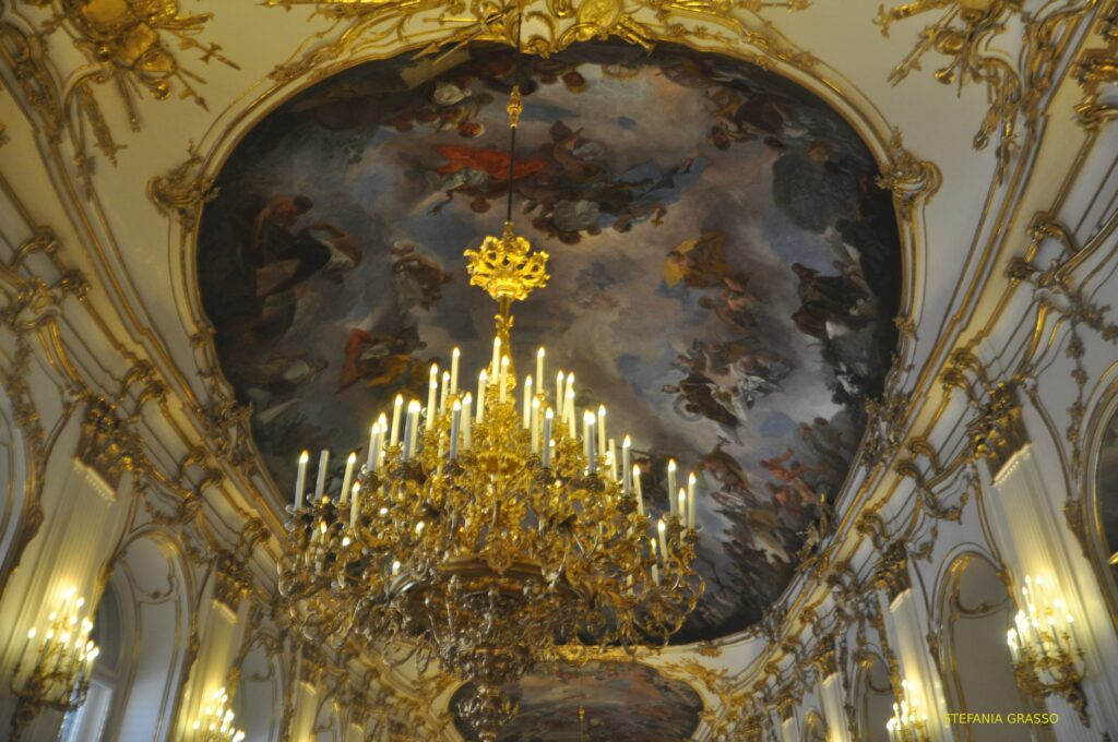 Salone degli Specchi. Monocromia in bianco, sala delle udienze pubbliche del lunedì e del giovedì. Sede del primo concerto di Mozart nel 1762. Das Spiegelzimmer. Monochrom in weiß, Saal der öffentlichen Audienzen am Montag und Donnerstag. Der Ort des ersten Konzerts von Mozart im Jahre 1762