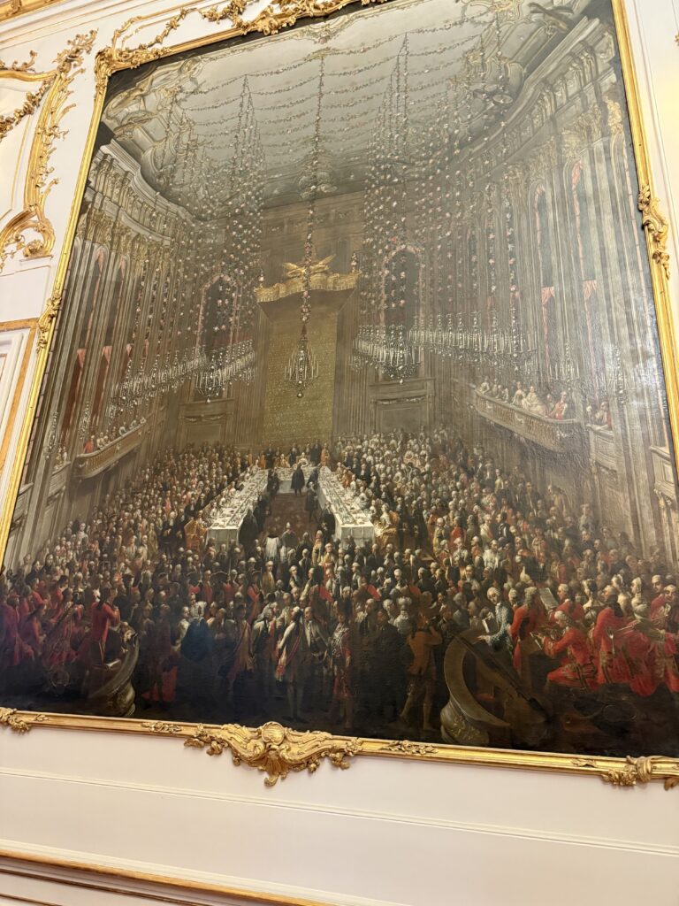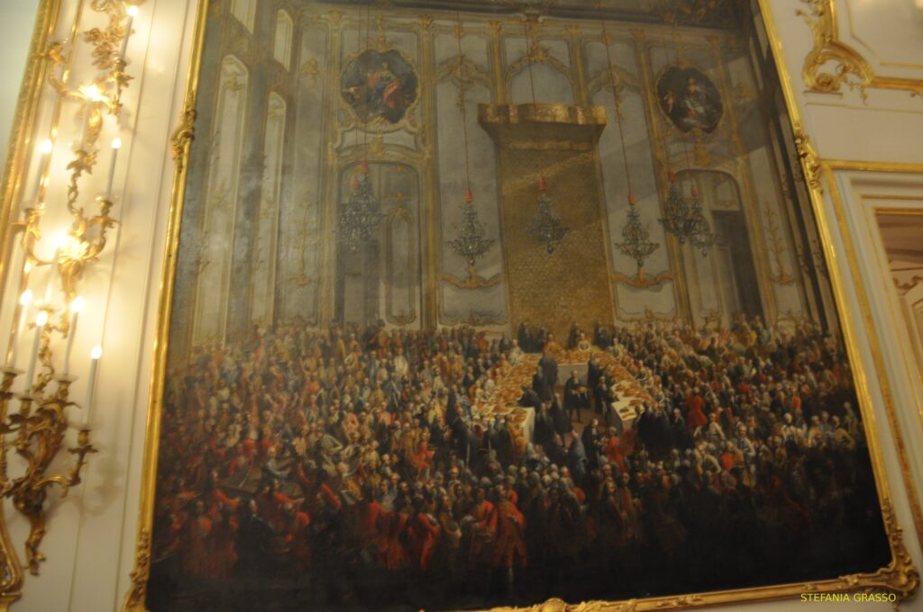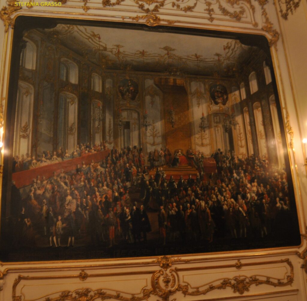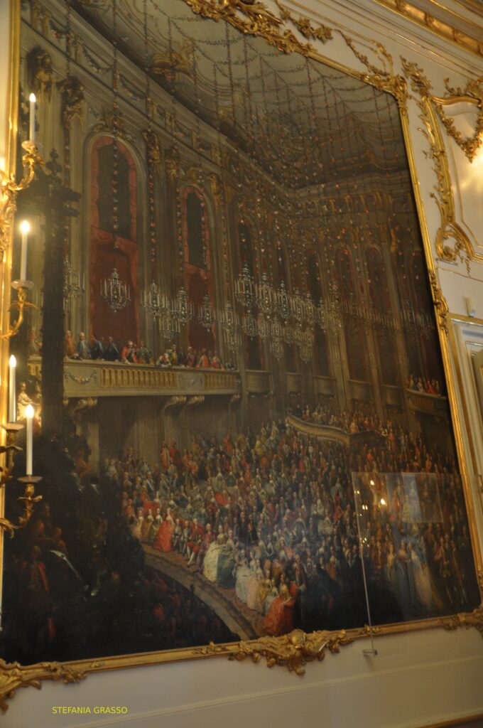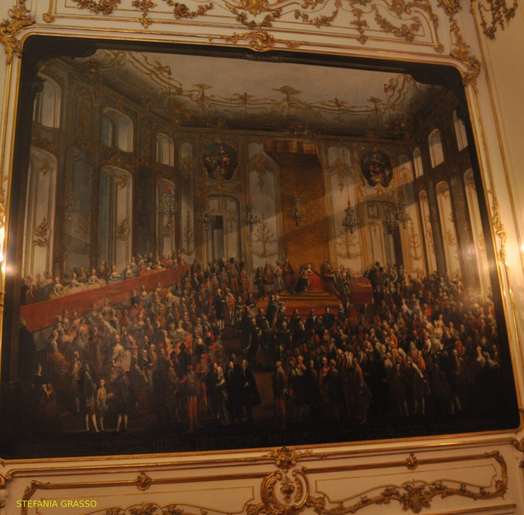 Sala delle Cerimonie. Ciclo di dipinti inerenti i festeggiamenti di nozze tra il figlio maggiore di Maria Teresa, Giuseppe, e Isabella di Parma, nipote di Luigi XV.