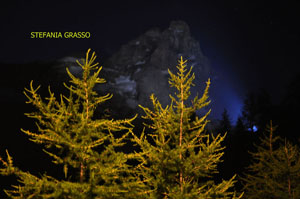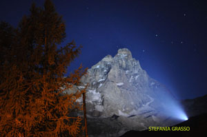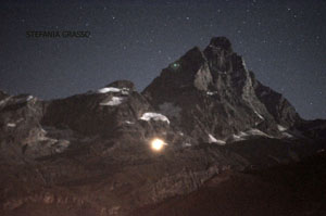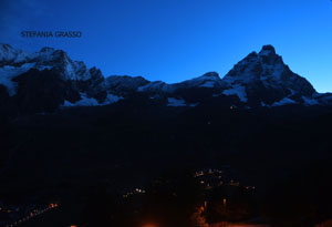 Ed ecco che al sopraggiungere della notte, Lui, il Re, Sua Maestà, il Cervino già splendente dal Suo Trono si illuminava di un fascio blu sotto le stelle. In quei momenti profonda commozione, non si riusciva nemmeno a parlare talmente le emozioni erano forti e quando non si riesce ad esprimersi per via di troppe lacrime bisogna cedere la parola a loro, nel mio caso alle Nikon le uniche in grado di trasmettere quelle sensazioni così belle di purezza, di essere finalmente in un mondo migliore. Luce soave, radiosa, plachi le tristi contese, estingui la fiamma dell’ira, conduci nel riposo più sublime.