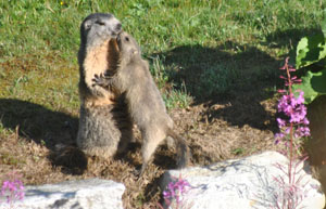 E da Plan Maison sopra la Diga del Goillet, dove prevale il contrasto tra lo smeraldo e l’azzurro dell’acqua e il marrone della roccia, e i laghetti annessi gli animali corrono tra i massi rocciosi, esibiscono tutta la loro tenerezza fino al centro del paese. Quanto sono commoventi, struggente la loro dolcezza.