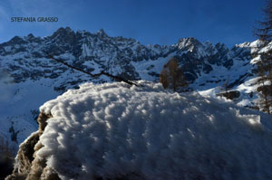 Quanto è candida la neve, anche nei prossimi giorni scenderà, suggestive le forme del ghiaccio. Lo Riondé sembra la casetta delle favole, ora appare deserto e isolato ma ben presto riaprirà le sue porte soprattutto a coloro che avranno la fortuna di raggiungere la cima della Gran Becca.
