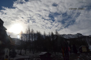 Se inizio a guardare verso il cielo sopra Cervinia mi rendo davvero conto dell’immensità del Creato, di quanto gli esseri umani siano piccoli di fronte a meraviglie simili, davvero come dice il versetto di un Salmo “L’uomo nella prosperità non comprende, è come gli animali che periscono”. La neve non si è ancora sciolta, tutt’altro. E’ sempre più candida, soffice, delicata passeggiando verso il bosco, il Cervino domina nel Suo Regno circondato da rari altostrati e nubi circolari. E’ questo il Suo vero impero attorno al clima nivale della regione alpina. E’ morbida la neve, una fiaba il paesaggio.