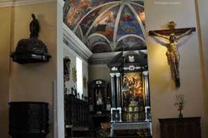 Ci incamminiamo baciati dal Sole sul versante svizzero costeggiando questo bellissimo lago per raggiungere l’Hospice du Grand Saint Bernard, e visitiamo la Chiesa, terminata nel 1685, costruita in puro stile barocco piemontese sopra la chiesa primitiva, la cripta, riservata oggi alla preghiera. Il coro della chiesa evidenzia particolari stalli in noce massiccio. Da notare l’altare maggiore dedicato all’Assunzione della Vergine Maria. La volta presenta gli affreschi dipinti dal Gnifeta nel 1686. Molto bello il crocifisso del ‘600 e l’organo del 1812.