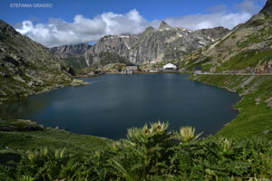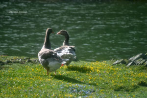 L’aria è meravigliosamente fredda e all’arrivo al lago troviamo stupiti due esemplari di oca selvatica sempre avvistate solo nel bel mezzo della pianura piemontese che sembrano godersi anche loro il magnifico panorama circostante. Si tratta di un paesaggio molto brullo che tuttavia offre magnifiche vedute del lago tra i cardi, piccole genziane con un contrasto meraviglioso tra i colori verde e blu.