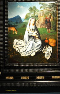 Il percorso inizia con alcune opere particolarmente luminose che illustrano il tema della fuga dall’Egitto, il volto della Vergine vestita di bianco intenta a riposarsi, sempre col Bambino tra le braccia. Nel quadro di Francken (la terza fotografia) inizia già a svilupparsi un contorno floreale ripreso pienamente da Abraham Brueghel specializzato in nature morte.