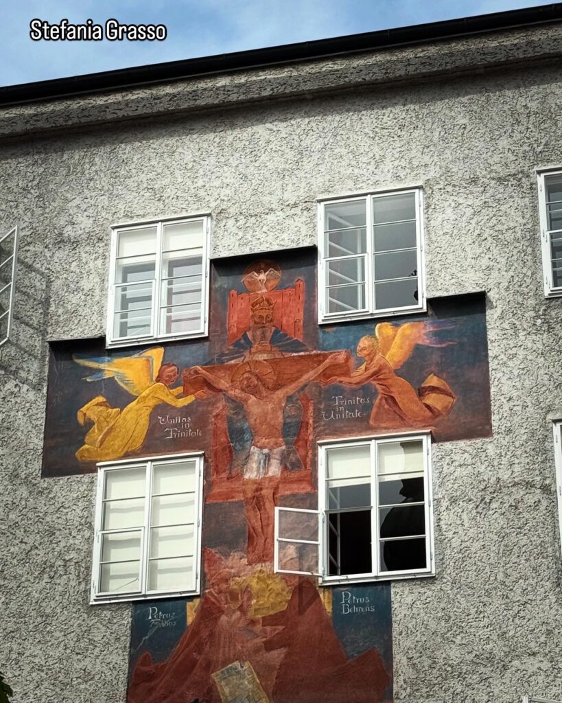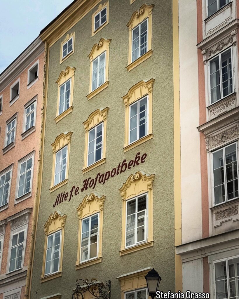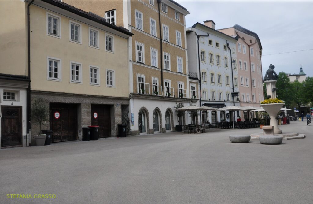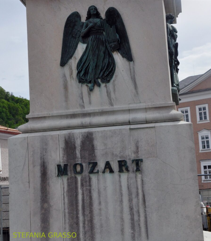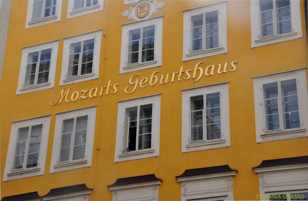 Come non fotografare il monumento a Mozart nella sua splendida dimora? Con la sua casa, naturalmente. Austria, patria sublime della musica classica, il regno dell’armonia. Wie könnte man das Mozart-Denkmal nicht in seiner schönen Wohnung fotografieren? Natürlich mit seinem eigenen Haus. Österreich, die erhabene Heimat der klassischen Musik, das Reich der Harmonie.