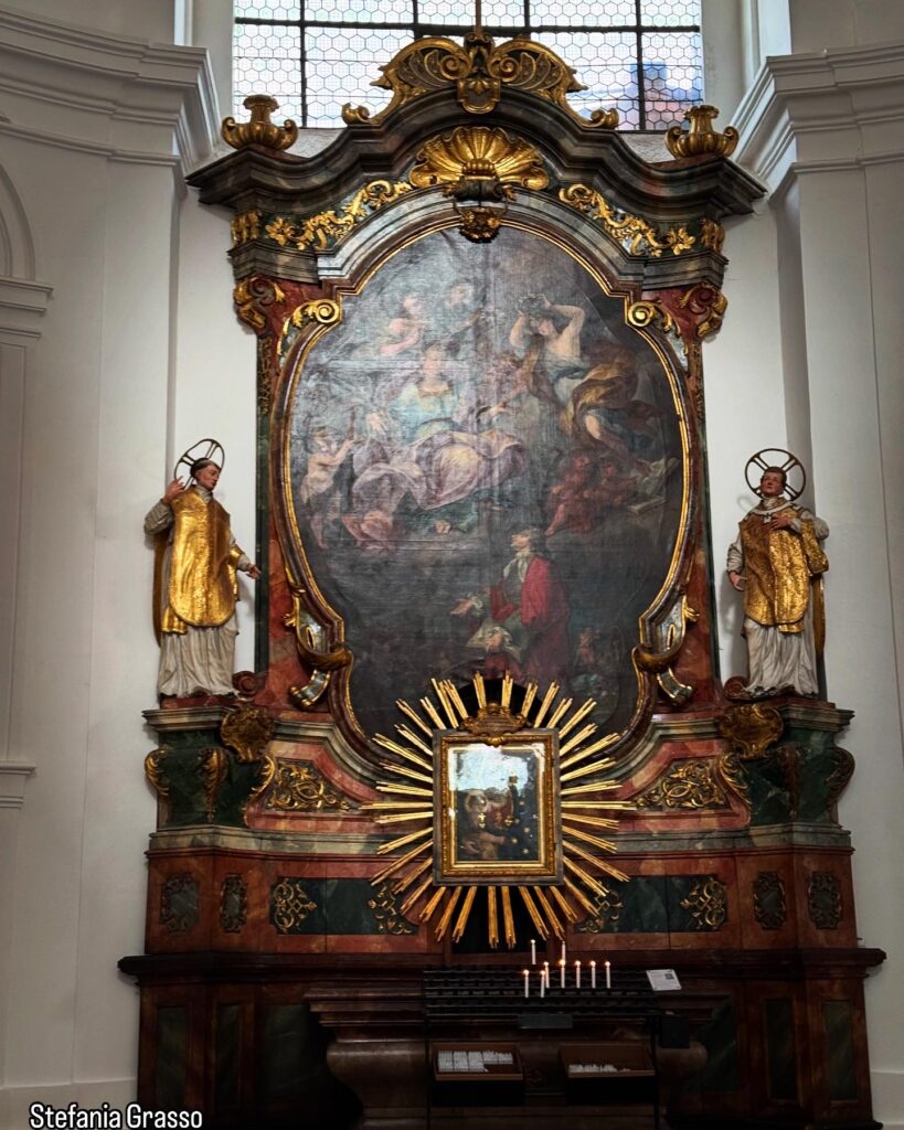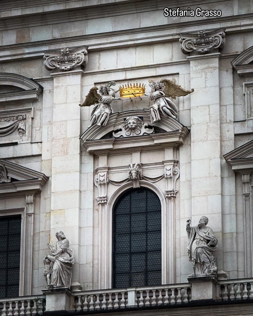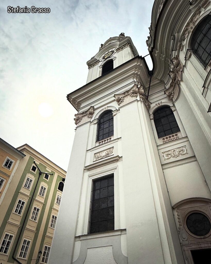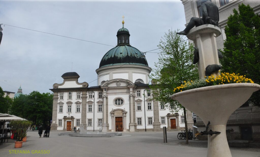 La guida locale ha poi optato per la visita della Kollegienkiche, la chiesa dell’Università. A seguire i dipinti all’interno dedicati alle varie facoltà, dalla Medicina alla Filosofia. L’edificio presenta uno stile misto tra Barocco e Rococò con una struttura interna ad ellisse con pianta centrale e cappelle laterali. Der örtliche Reiseleiter entschied sich für einen Besuch der Kollegienkirche, der Universitätskirche. Das Gebäude hat einen gemischten Stil zwischen Barock und Rokoko mit einer inneren Struktur mit einem zentralen Plan und seitlichen Kapellen. Nachfolgend sind die Gemälde im Inneren aufgeführt, die den verschiedenen Fakultäten von der Medizin bis zur Philosophie gewidmet sind.