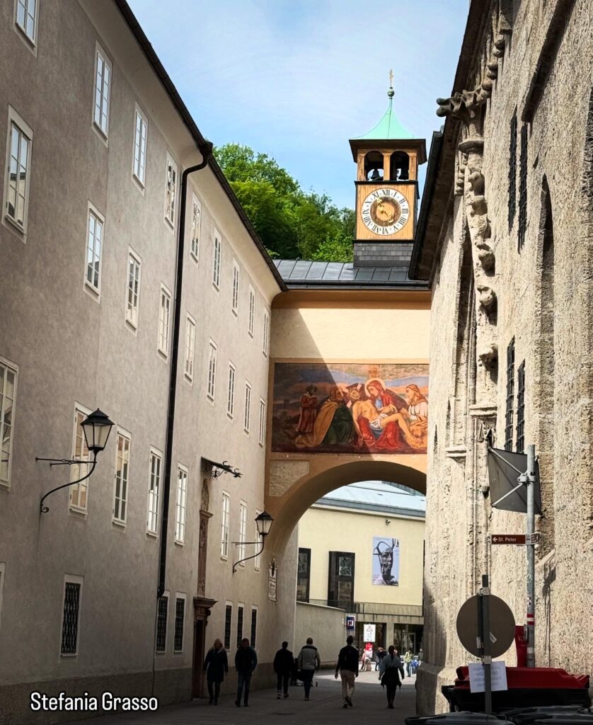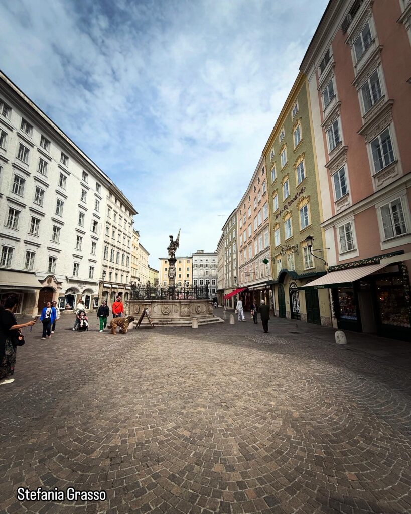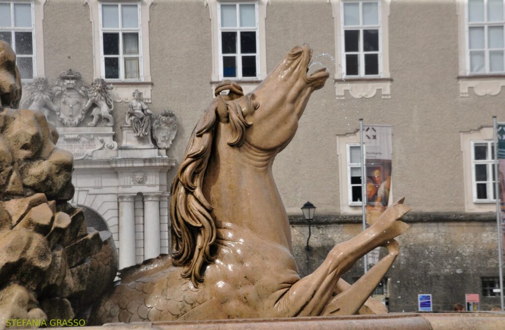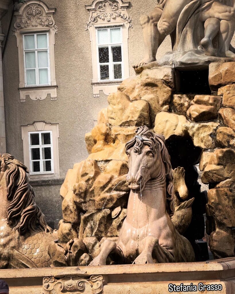 Nel quartiere del Duomo si trova il museo della Residenza con la fontana e il cavallo che lancia i getti d’acqua. Im Domviertel befindet sich das Museum der Residenz mit dem Brunnen und dem Pferd, das die Wasserstrahlen wirft.