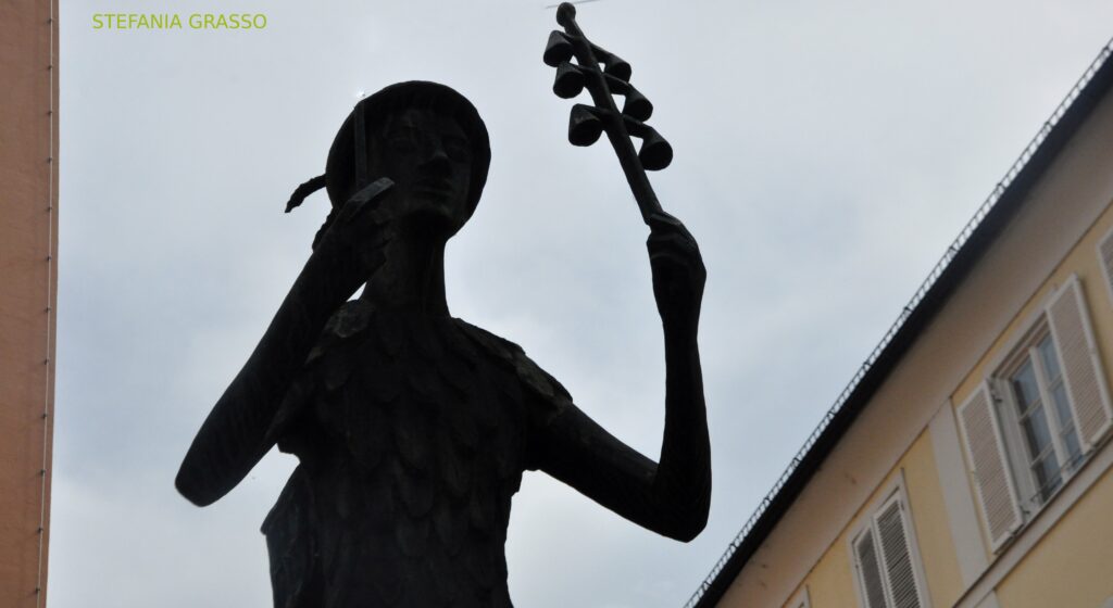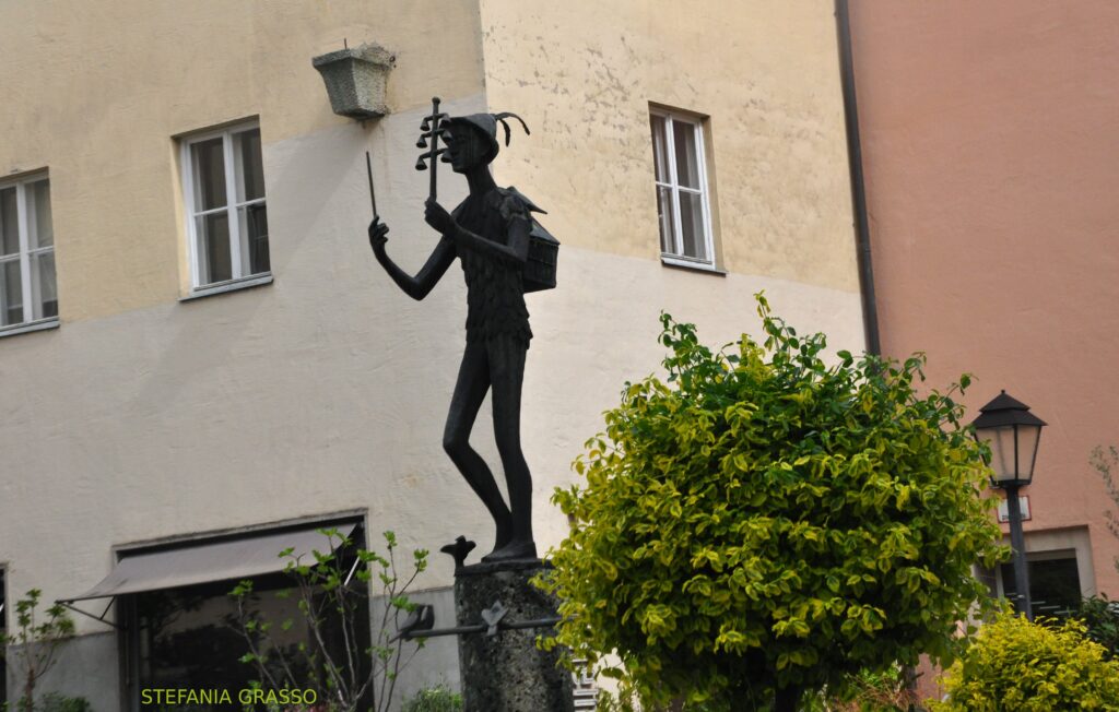 Altra scultura caratteristica è la statua di bronzo Papageno ispirata al flauto magico di Mozart, opera di Hilde Heger. Eine weitere charakteristische Skulptur ist die Bronzestatue Papageno, inspiriert von der Zauberflöte von Mozart, ein Werk von Hilde Heger.
