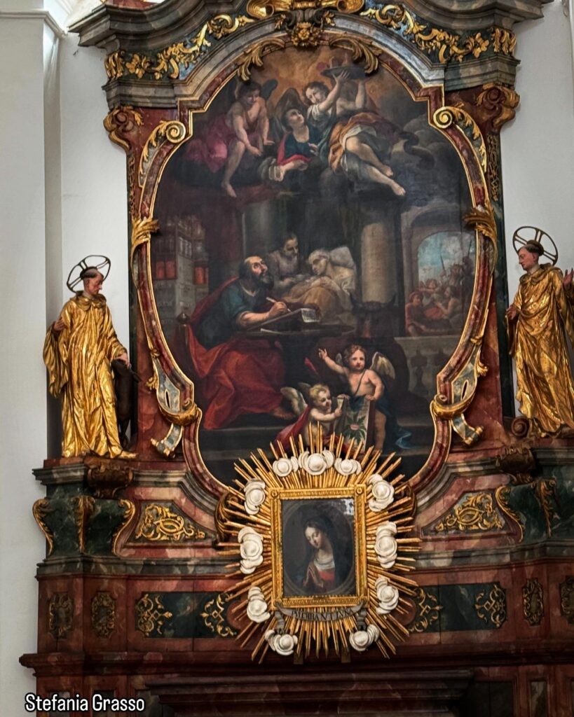 Poco più avanti la chiesa cattolica Cajetan, in stile barocco austriaco. Etwas weiter die katholische Kirche Cajetan, im österreichischen Barockstil.