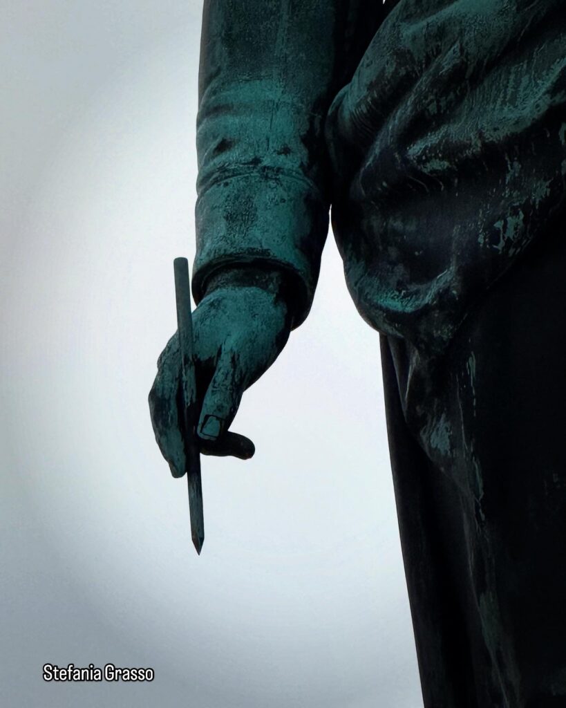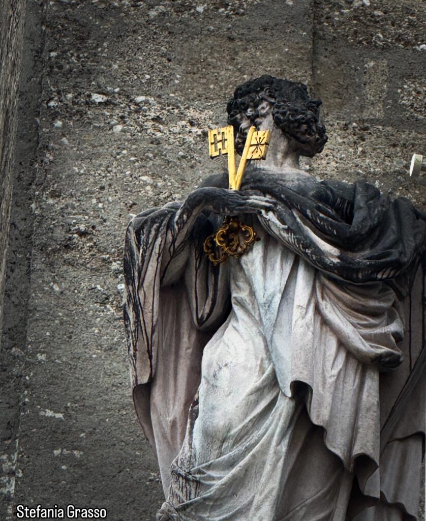 Dettagli della statua di San Pietro con le chiavi. Details der Statue von St. Peter mit den Schlüsseln