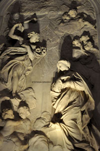 a cui seguono le sculture di Antonio Tarsia con l’Annunciazione della Vergine San Domenico e Santa Rosa. Nella lunetta superiore si può notare l’Assunzione di Vassillacchi