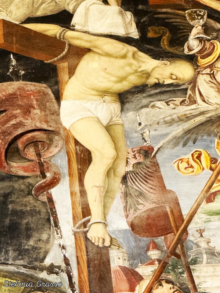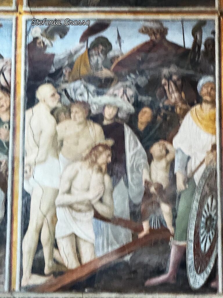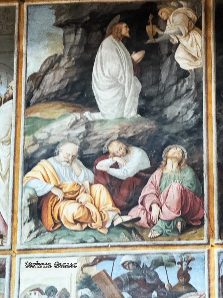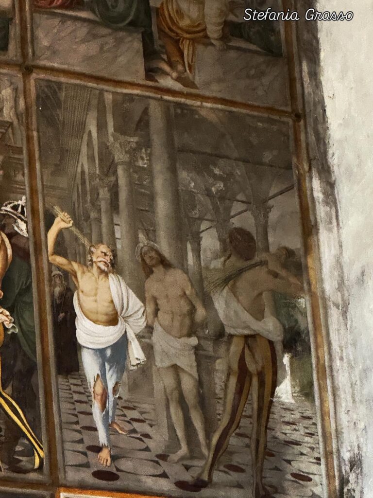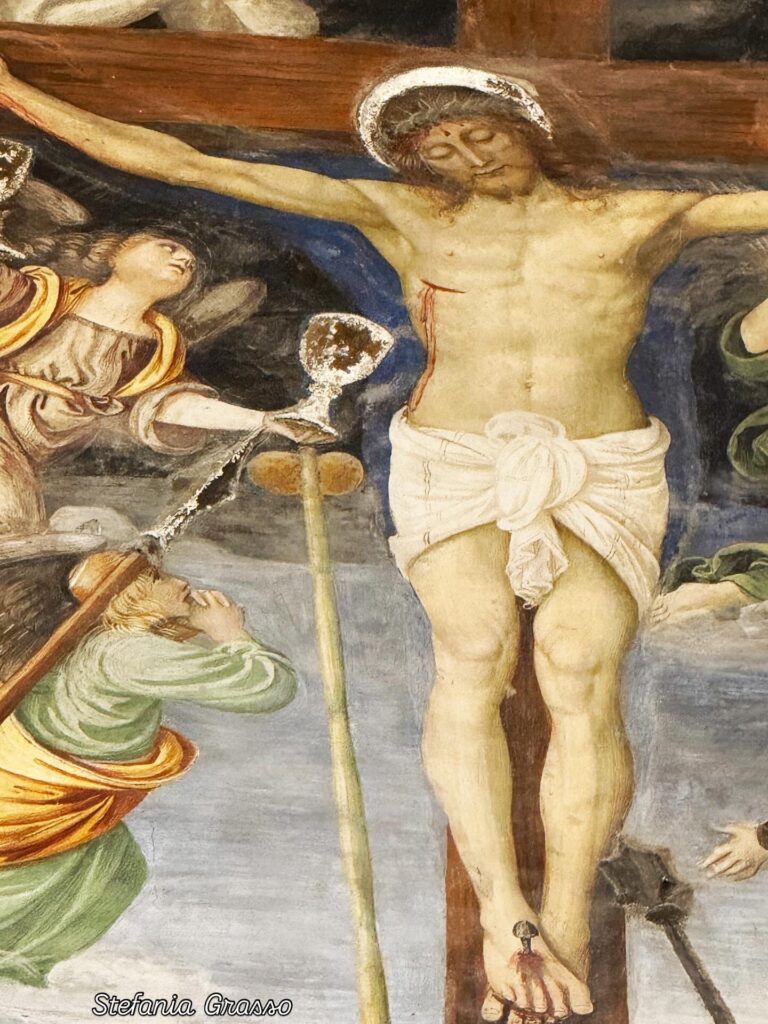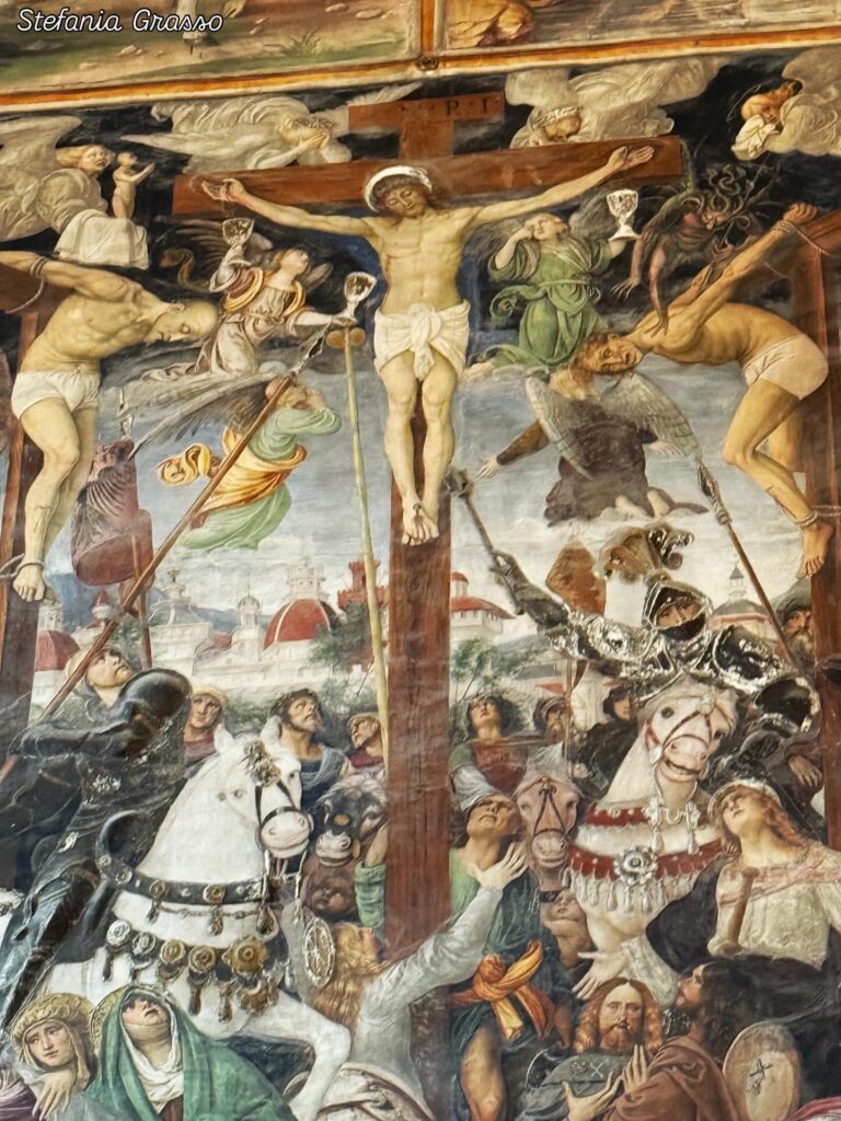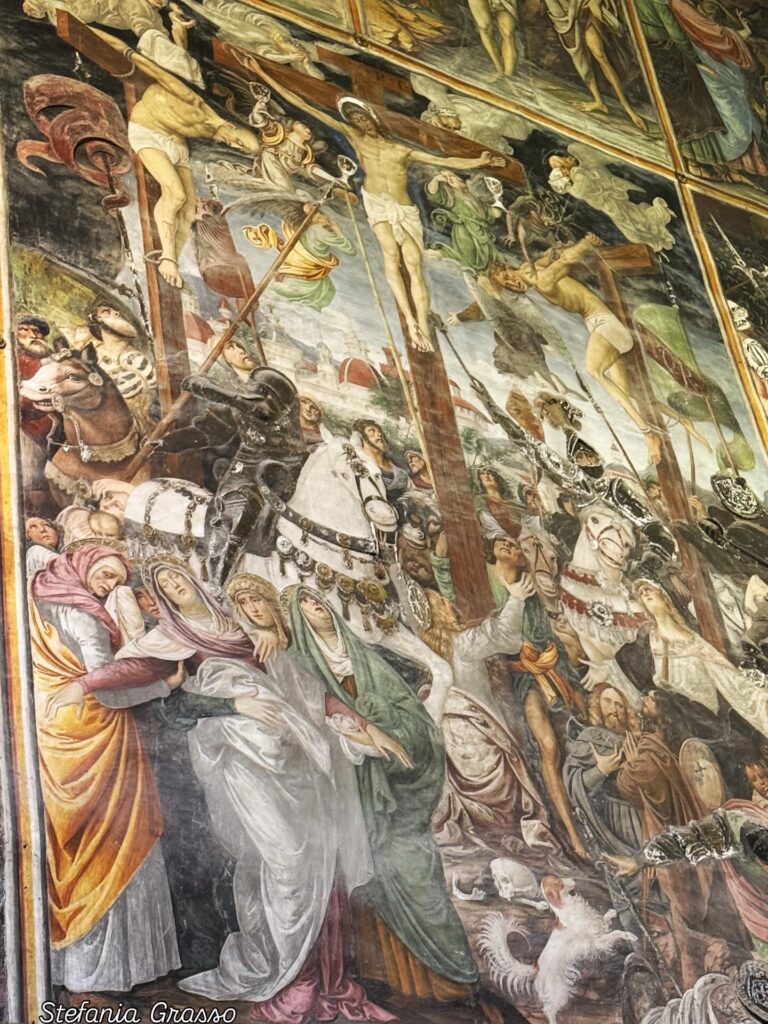 Costruita per volontà di Bernardino Caimi, capolavoro indiscusso di Gaudenzio Ferrari, nel cuore di Varallo Sesia, in provincia di Vercelli, contiene la “Parete Gaudenziana” del 1513, il racconto della Passione, Ascensione e Risurrezione di Gesù. Gli episodi ricordano quelli degli affreschi della Chiesa di San Cristoforo di Vercelli, soprattutto i cavalli bianchi. Il ciclo di affreschi ricopre una superficie di 10,4 x 8 metri con 20 riquadri di uguale grandezza. Nei medaglioni San Francesco e San Bernardino da Siena.
