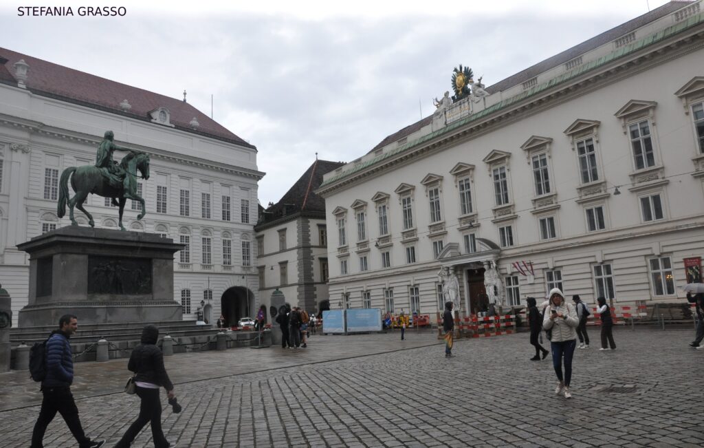 A fatica si procede in direzione del complesso Hofburg, centro del potere austriaco con la biblioteca imperiale, il monumento a Francesco Giuseppe, la cappella e l’ala agostiniana. Non ci è stato possibile visitare l’interno della chiesa di S.Agostino in quanto scacciati da un sacerdote infame nazista. Mühsam bahnen wir uns den Weg zum Hofburgkomplex, dem Zentrum der österreichischen Macht mit der kaiserlichen Bibliothek, dem Franz-Joseph-Denkmal, der Kapelle und dem Augustiner-Flügel. Das Innere der Augustinerkirche konnten wir nicht besuchen, da wir von einem berüchtigten Nazi-Priest verjagt wurden.