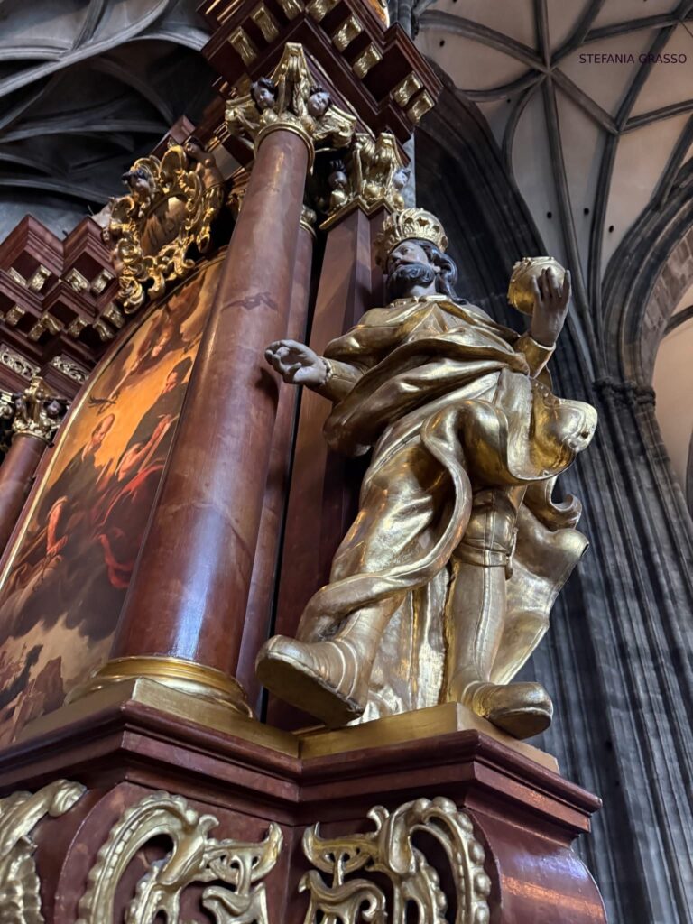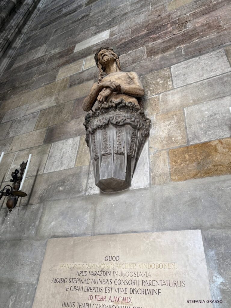 Imponente e principale  luogo di culto di stile gotico di Vienna con la torre nord (Nordturm) incompleta dopo i bombardamenti del 1945. Nella navata centrale spicca il famoso Pilgramkanzel, un pulpito gotico realizzato nel 1510 da Anton Pilgram e decorato con sculture dei quattro padri della chiesa e da animali diabolici messi in in fuga da un cane. La pala dell’altare laterale  è dedicata ai santi Pietro e Paolo ed è stata realizzata da Tobias Pock. Purtroppo il martirio di S.Stefano è stato coperto da un telo scuro con il crocifisso per via delle celebrazioni del venerdì santo come da tradizione. Nelle foto che seguono ci sono numerosi dipinti di autori ignoti. Dalla torre Sud invece è possibile salire e ammirare tutto il panorama viennese. Da notare il “Cristo del mal di denti” che punisce i peccatori con il mal di denti, statua donata da un peccatore guarito e convertito.  Il tempo nel giorno successivo è stato decisamente migliore.