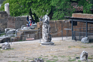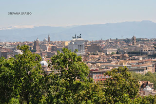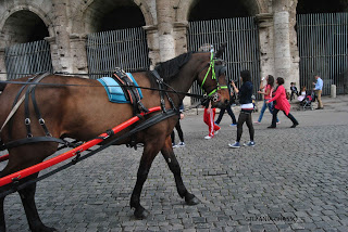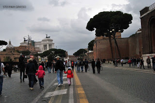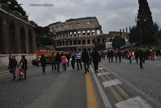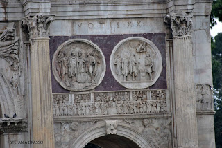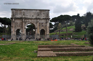 Il peggioramento delle condizioni atmosferiche con nubi oscure e forte vento non ci ha tuttavia impedito di ammirare l’arco di Costantino a tre fornici a pochi passi dal Colosseo con schema decorativo costituito da rilievi in marmo e porfido, la valle del foro romano dall’alto, la statua di Giulio Cesare fino al Campidoglio.