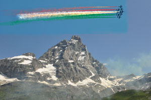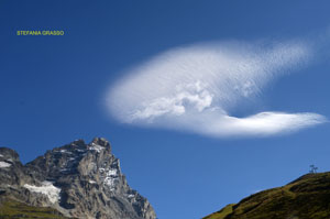 Sì, è vero, in effetti ci sono le nuvole più belle che sembrano essere felici nel cielo di Cervinia, sopra il nostro Re, anche loro sentono che questo luogo è di loro appartenenza.