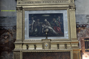 Sempre sul lato sinistro si trova l’opera di Parmigianino del 1527, San Rocco e un donatore nell’intento di ringraziare Dio per la guarigione dalla peste.
